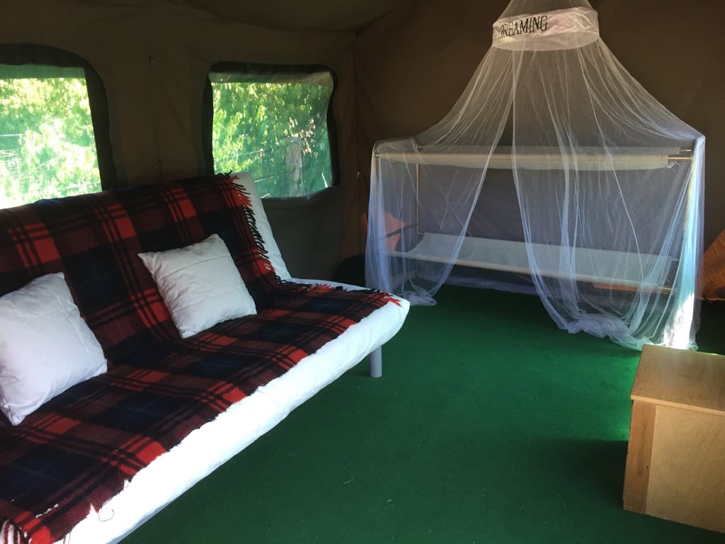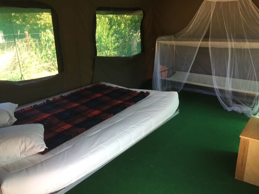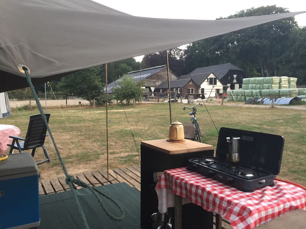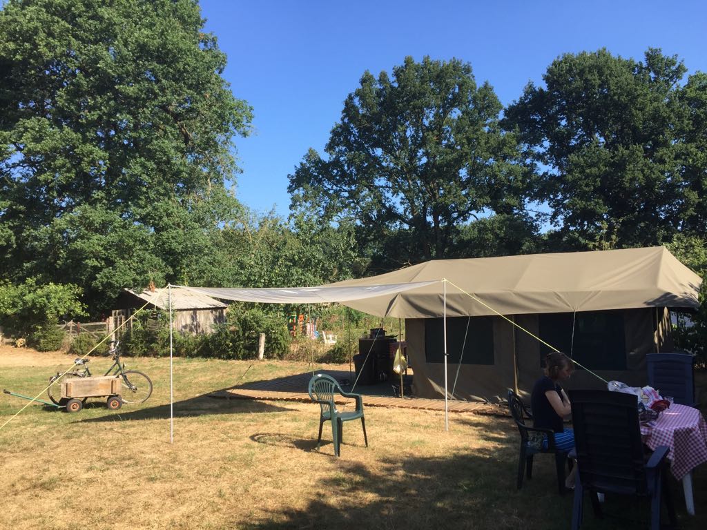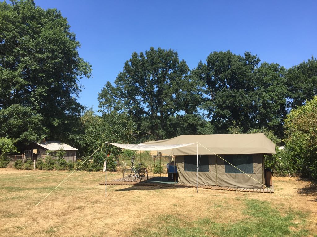 Rent a safari tent. The safari tent is a fully equipped tent with a comfortable bed that can serve as a sofa during the day. There is a bunk bed for children up to 10 years old, or a camp bed for an extra person. Children up to 2 years old can join for free. Including use of hot water, shower, electricity, small refrigerator, stove, crockery, cutlery, pans and cooking equipment, garden chairs and table. Bed linen and fire pit on request for an additional charge.